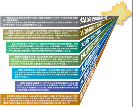 首发的《新疆能源年度报告(2014)》为我们绘制的新疆能源版图显示,能源产业已成为新疆国民经济的重要支柱产业,新疆能源版图在全国能源供应格局中的地位已初步确定新疆已初步确立了国家综合能源基地的地位。